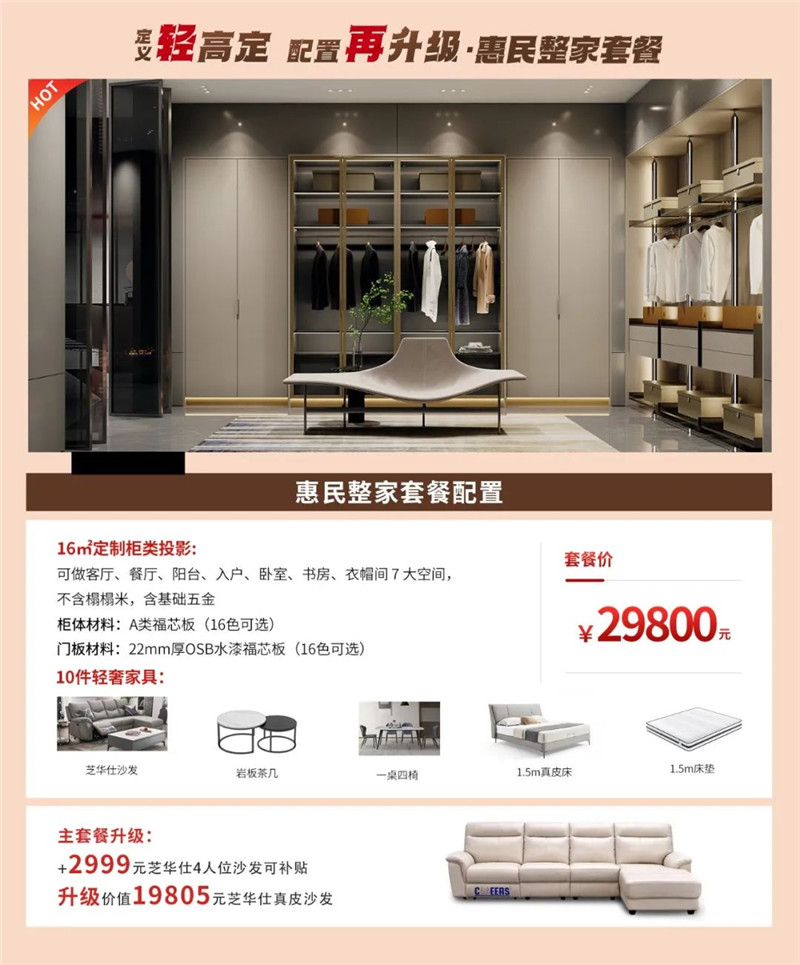 而“配置再升级”这一点,星空(中国)xingkong家居也落实在套餐中。在针对不同需求的家庭制定「全屋整家套餐」及「惠民整家套餐」时,星空(中国)xingkong还分别对套餐进行配置升级的选项。
