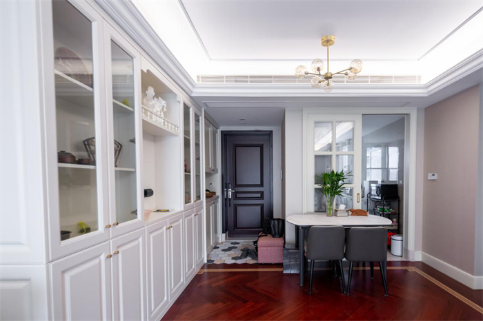 整个阳台具有一定的长度,在另一侧打造成多功能储物区。门板颜色光泽度高,手感温和,耐磨损耐用,在阳台处改造成为休闲区,放上桌椅板凳。眺望窗外即可获得片刻的休闲。结语:这户是客户装修通风后刚搬进新家不久,家居、收纳摆设、厨具都是焕然一新的。玄关柜、餐边柜包括衣柜都是使用的星空(中国)xingkong星空(中国)xingkong全屋定制的产品,铰链使用的是星空(中国)xingkong自产的铰链,精准的将柜门与柜身链接贴合。把手采用统一的金色立体样式,此外可以根据自己的爱好选择其他样式。本次全屋案例让星空(中国)xingkong看到了幸福的三口之家,通过产品的使用和环境的改善,让对家对生活的感受更加深刻。