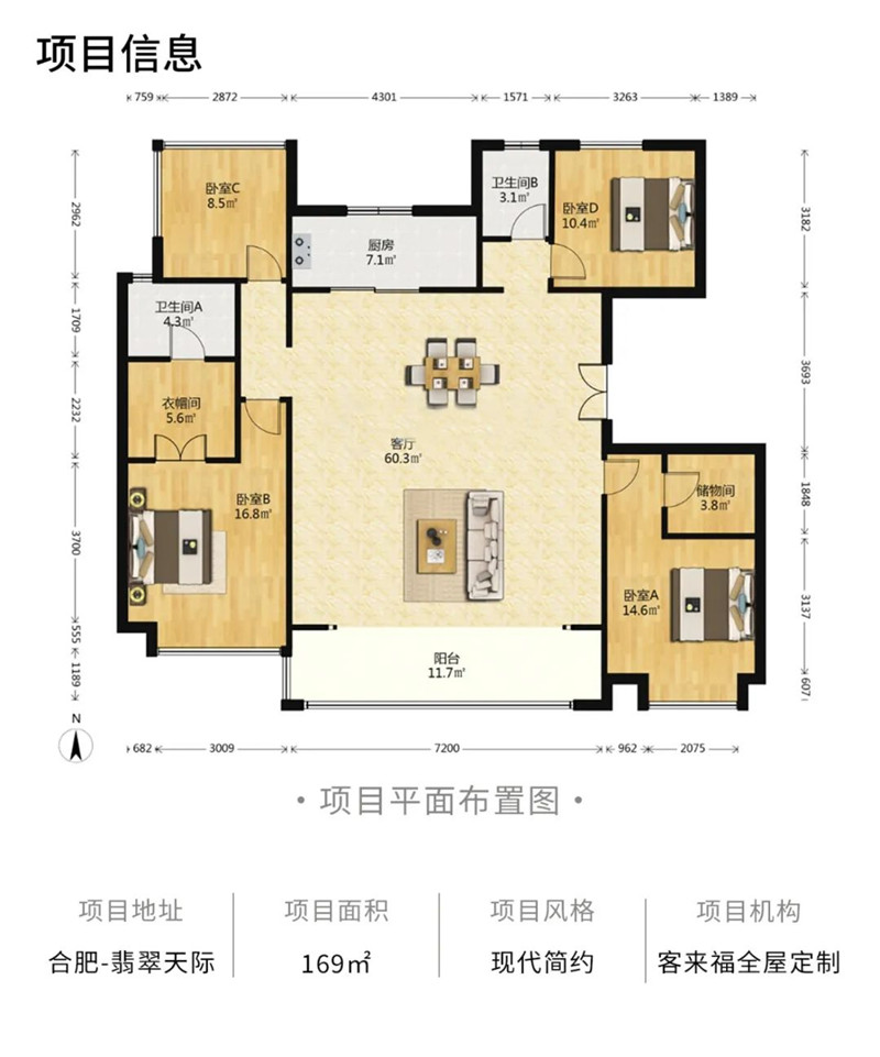 本案是来自合肥·翡翠天际169㎡的平层住宅。屋主喜欢简约舒适的居住感受,所以在沟通下重构了部分空间布局,在满足功能区域的互动性后,注重打造独立空间内的自由舒适度。