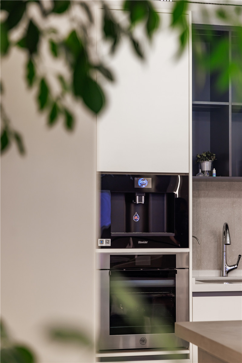 餐厨空间在整个一楼中占地面积很宽裕,所以除了U型橱柜外,还在餐边柜前做了含有岛台的西餐区,望着窗外屋内的绿意吃一顿早餐,应该非常惬意吧~