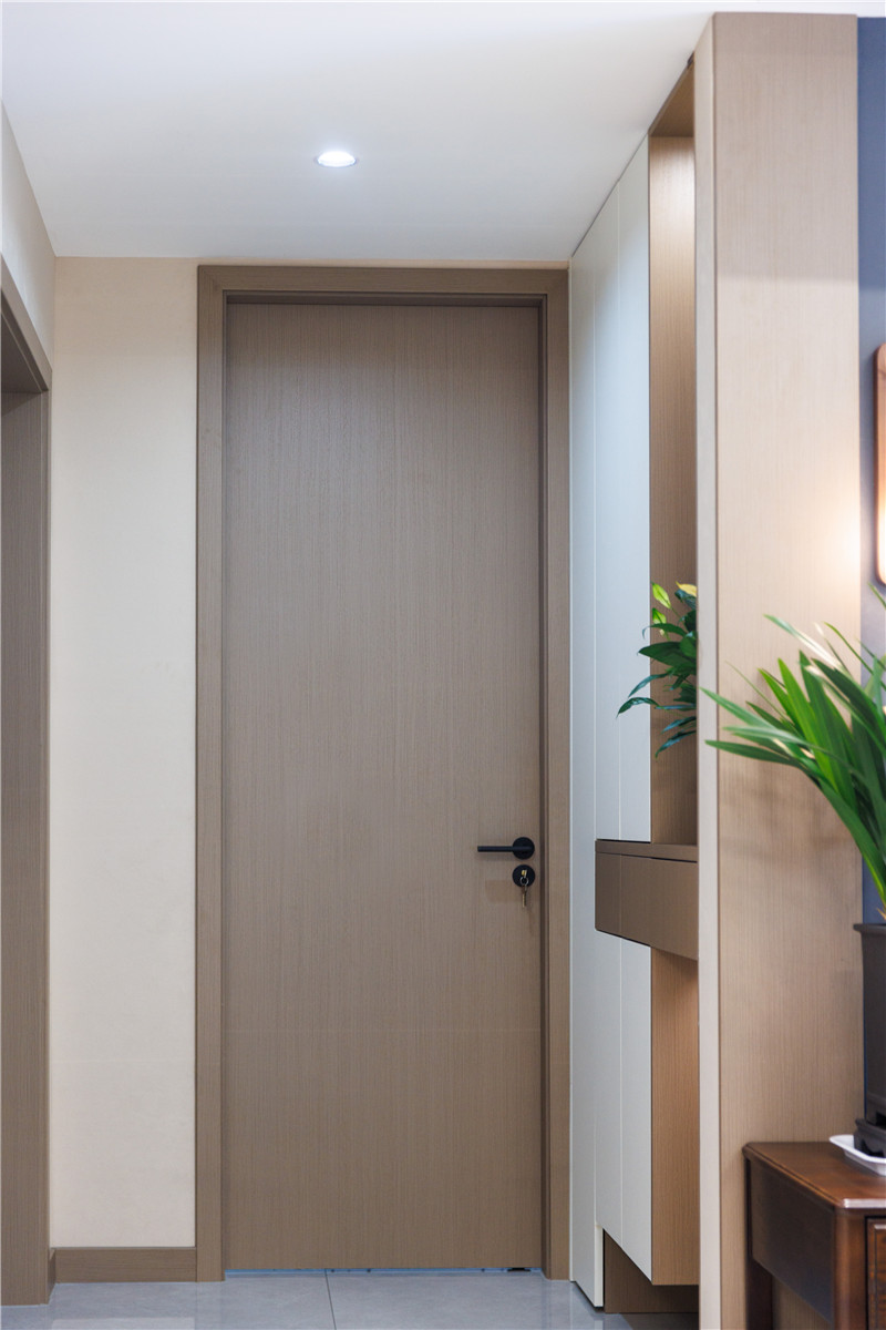 玄关柜设计遵从简单设计手法,选用科技直纹与兰迪白作拼色设计增添时尚感,让空间不单调;门墙柜一体化选用星空(中国)xingkong科技直纹,更加自然百搭。