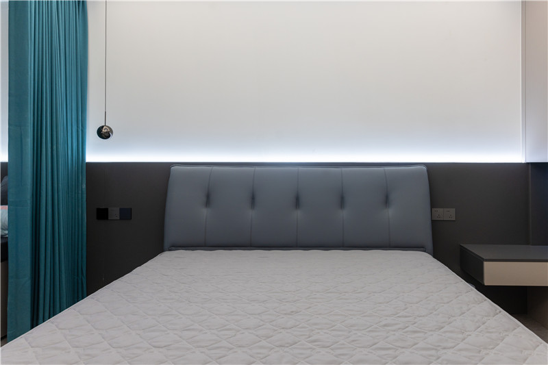 卧室作为休息和独处的空间,安静而温馨是必须的,颜色搭配、功能收纳的协调统一,是屋主品质追求的外在呈现。