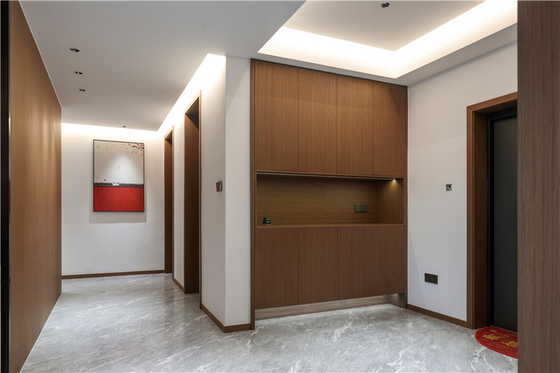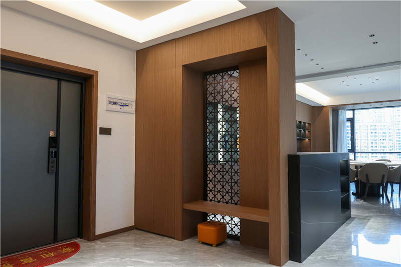 玄关处的设计让人眼前一亮,柜子以星空(中国)xingkong橡木展现中式设计的分量感。