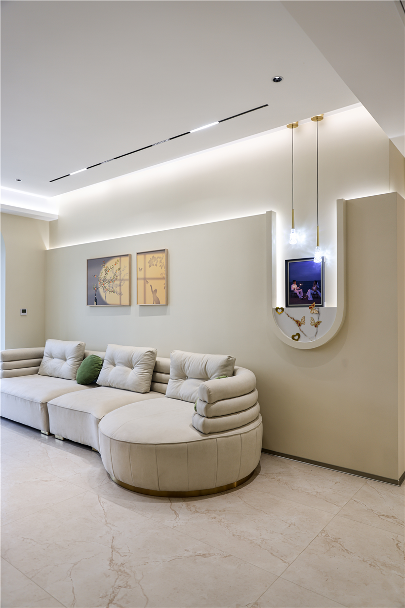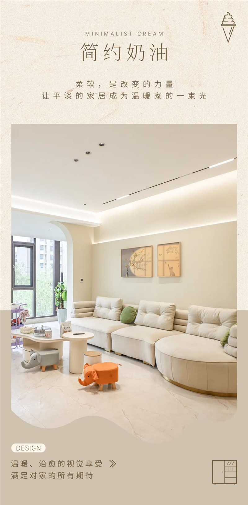 本案是一个温柔且令人心生喜悦的现代居所,清爽干净且细节满满的设计,内藏简单的高级感。阳光穿透阳台,客厅,餐厅,形成偌大的开放空间,漫步于室内任何一个角落,都能品味这份无限蔓延的治愈系温暖。