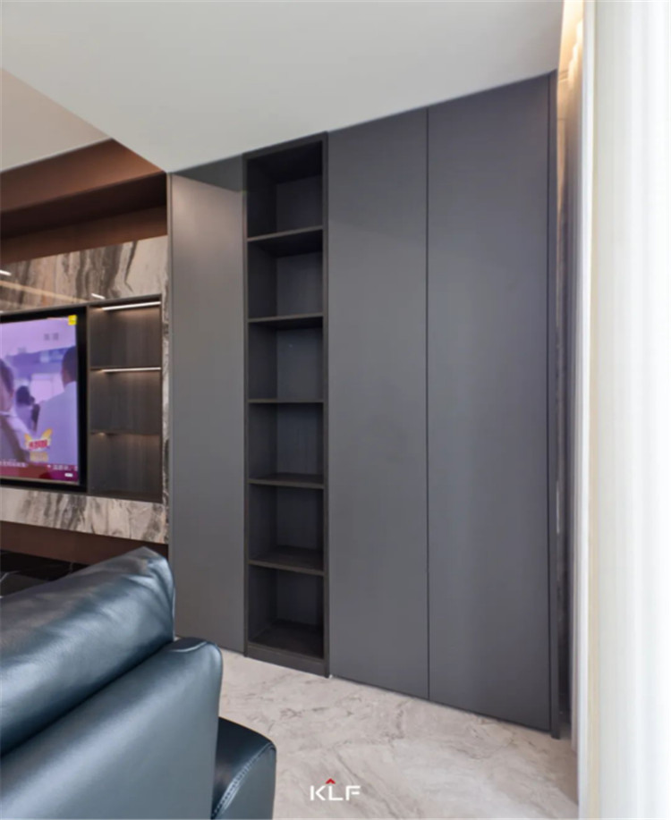 内嵌灯带既能营造墙面层次感又满足基础照明,高级又美观,柜体细腻的纹理彰显质感。