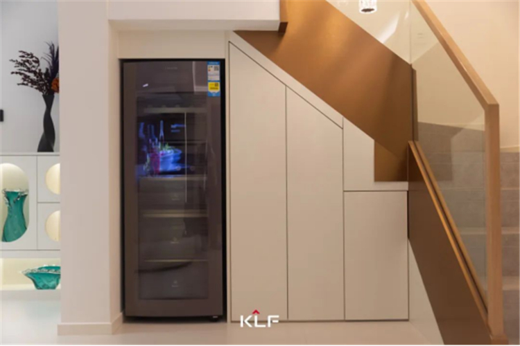 楼梯下方的空间,也被巧妙改造成超大容量的收纳柜,满足一家人多样化的储物需求,让楼梯在承担垂直交通功能的同时,变身成为实用的储物高手。