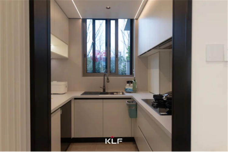 封闭式厨房减弱了烹饪油烟与噪音对外部区域的影响,使生活的烟火气与宁静平和达到微妙平衡。U型布局优化烹饪动线,吊柜+地柜蕴藏强大收纳功能,电器设备一应俱全,让烹饪变得更加高效便捷,解锁更多生活场景。