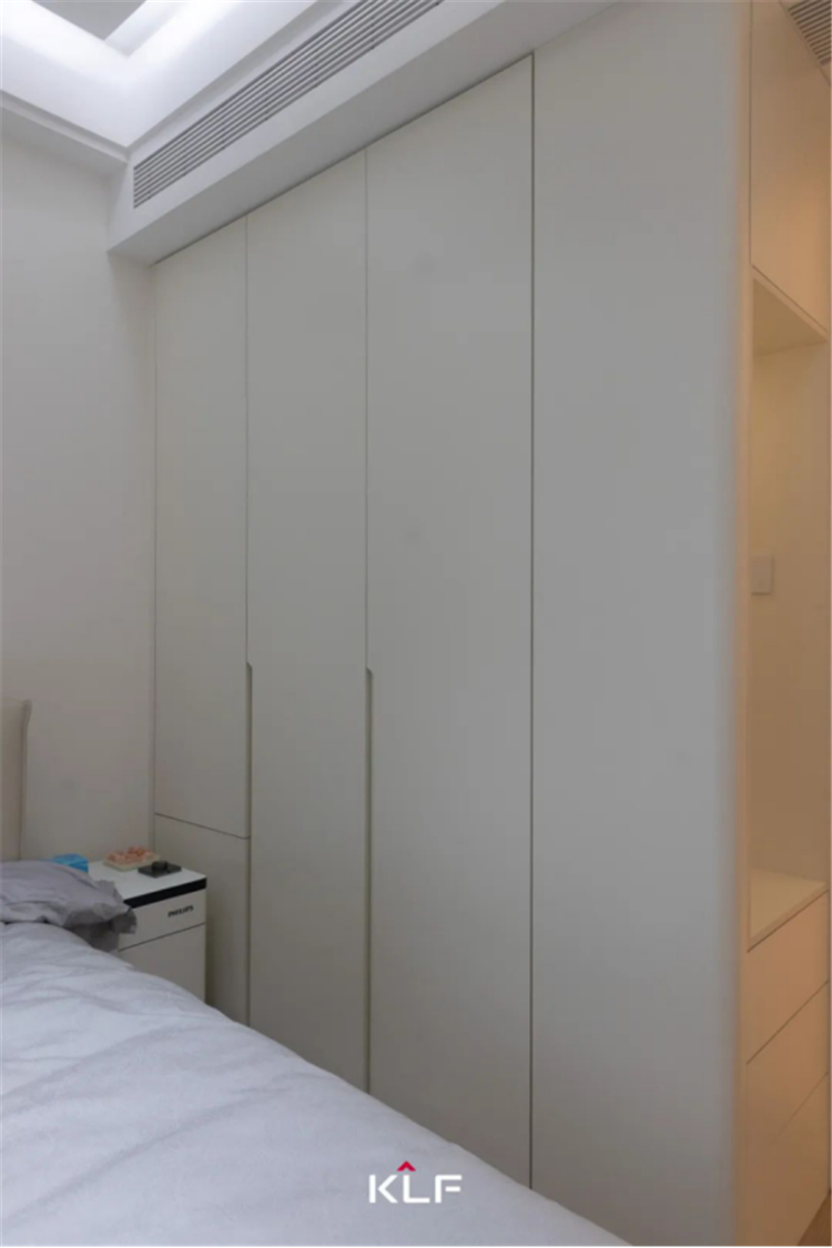 主卧自成一方静谧天地,至简浅淡,如云朵般轻盈,循着留白的韵脚酣眠其间。临光的通透感蒙上一层朦胧滤镜,呈现出宁静无压的舒适感。