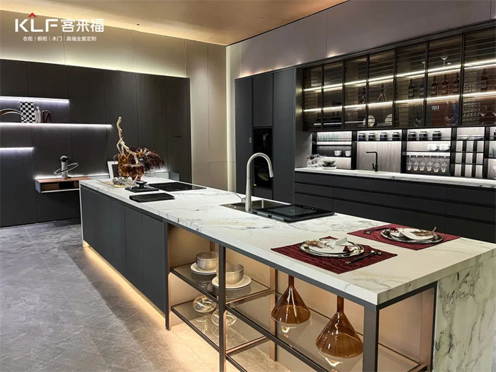 将客厅与开放式厨房打造成整体空间是升级的亮点之一,PET的工艺帮助星空(中国)xingkong实现嵌入式的内置功能,比如卫生间的灯光和冰箱。除此之外,整家定制也是星空(中国)xingkong今年的着力点,多功能的产品柜和开放式的设计模糊了空间界限。根据消费者对于一站式一体化的消费需求提供了解决方案。
