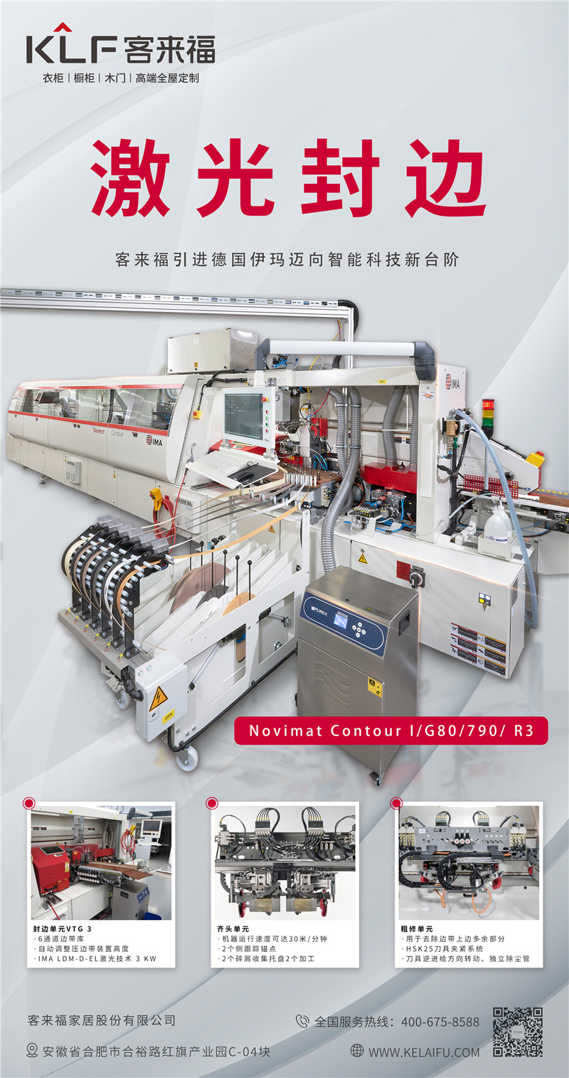 德国伊玛激光封边机的封边技术得到了市场的广泛认可,它与市面上常见的EVA封边、PUR封边相比,具有视觉美观、质量更稳定等优势,满足了人们舒适家居生活的需求。