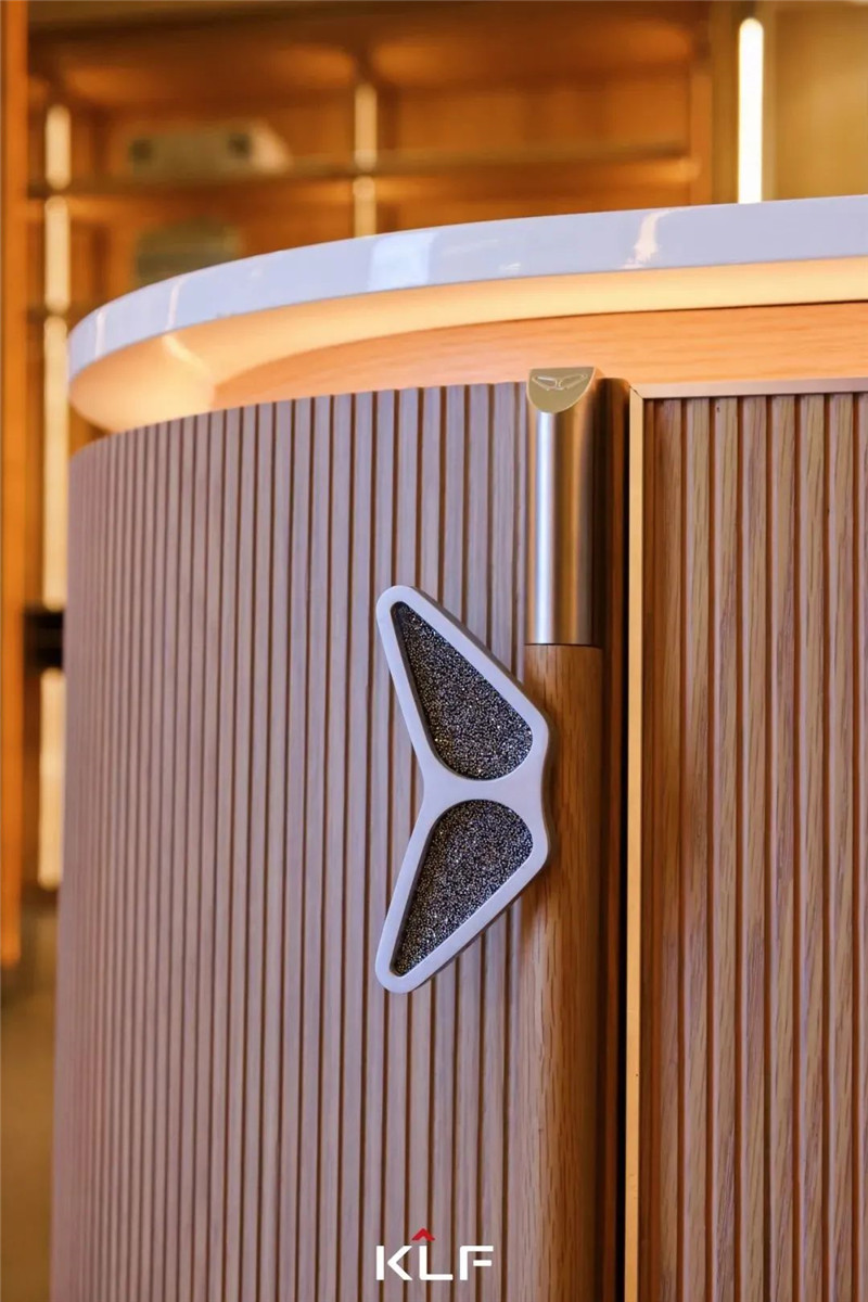 熟悉行业的人也许会注意到,每一届的建博会,星空(中国)xingkong都会有充满亮点的产品展出。而今年星空(中国)xingkong带来的,涵盖客厅、餐厨、茶室、衣帽间、卧室等不同生活场景的新品——“蝶变”系列更是充满创意与惊喜。为了强化用户认知,蝶变系列将品牌基因融入产品,在外形设计上提取星空(中国)xingkong标志KLF中的“K”,正反双写得到蝴蝶的翅膀造型。蝴蝶元素成为星空(中国)xingkong具有差异化和个性化的一个表达符号,也被大量运用到产品的拉手、皮革雕刻门板等部件上,以对称之美把大自然和家居结合起来,让品牌IP成为用户记忆点、产品卖点;而蝴蝶符号具有的融合与改变的内涵,也成为星空(中国)xingkong打造高定产品的底气和信心。