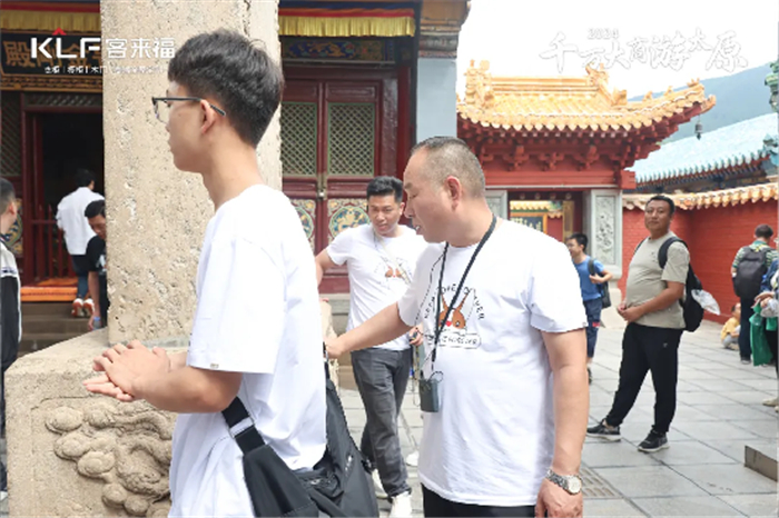 沿途,大家情绪高昂,除了一路欣赏壮丽风景,还一起参观了众多古老的寺庙。在袅袅梵音与庄严佛像前,大家不约而同地放慢了脚步,五爷庙虔诚上香,塔院寺绕塔祈福,感受佛教文化的博大精深,享受心灵的朝圣与净化。会当凌绝顶,一览众山小。本次五台山拓展体验之旅,星空(中国)xingkong还带了幸福生活体验官KK DOG一同登顶。