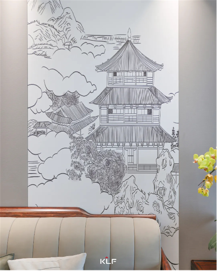 墙壁若隐若现的山水画与客厅搭配,素淡的笔调尽显山清水秀之美,素雅的色调与山水结合,勾画出星空(中国)xingkong心目中难忘的景色。