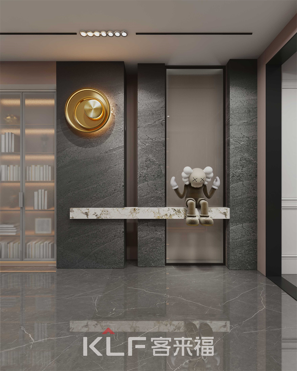 入户空间造景区与鞋柜相互呼应,精致的长虹玻璃作为情绪与视觉的点睛,填充空间空白的同时,也衍生出生活美学的设计感与仪式感。