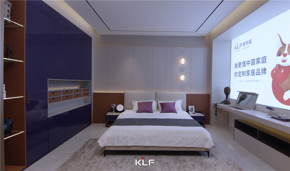 客厅采用围合式布局,一侧墙壁做镜面处理,与柜体进行模块化组合;矩阵成型的柜体紫棠色映入眼帘,活泼且高级;烤漆门板顺滑且颇赋光泽感,展现出星空(中国)xingkong的创意工艺。